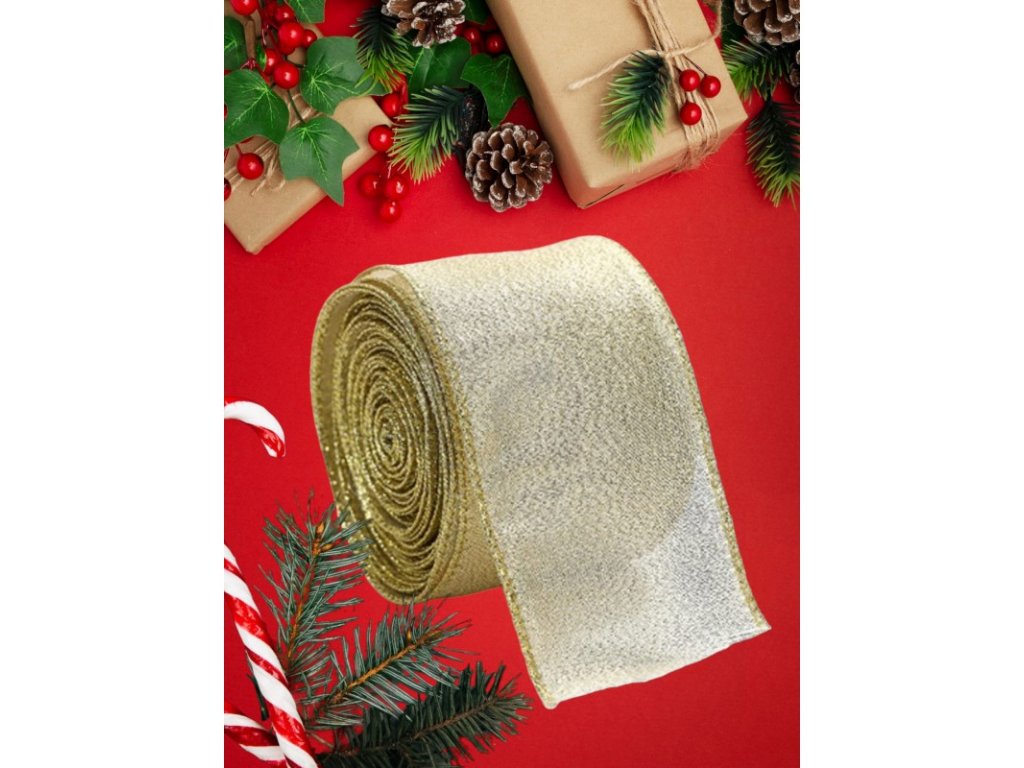 Vánoční stuha GOLDIE 6,3 cm x 2 m, zlatá
