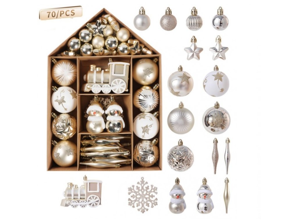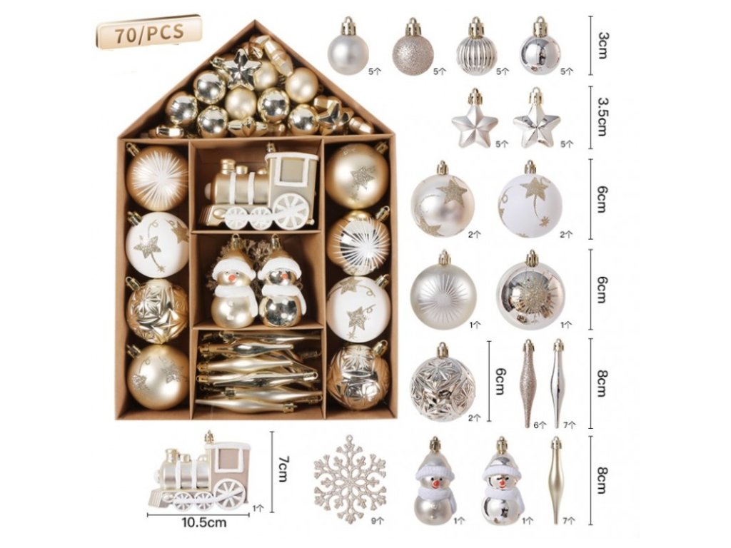 Sada vánočních ozdob DELUX zlatá/bílá, 70 ks