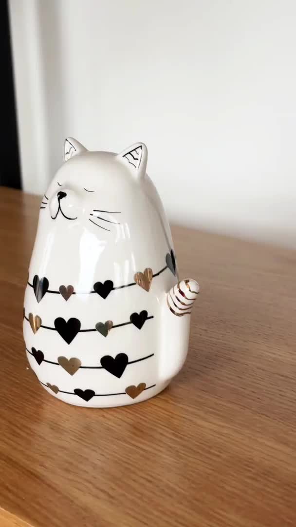 Keramická kočka se srdíčky LOVELY CAT 13 cm bílá