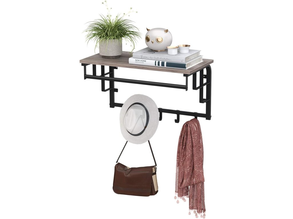 Šedá police s věšáky TAYLOR TRUFFLE 66x30x27 cm