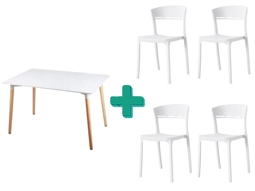 Jídelní set 1+4, bílý stůl BERGEN 120x80cm a bílá plastová židle COCO