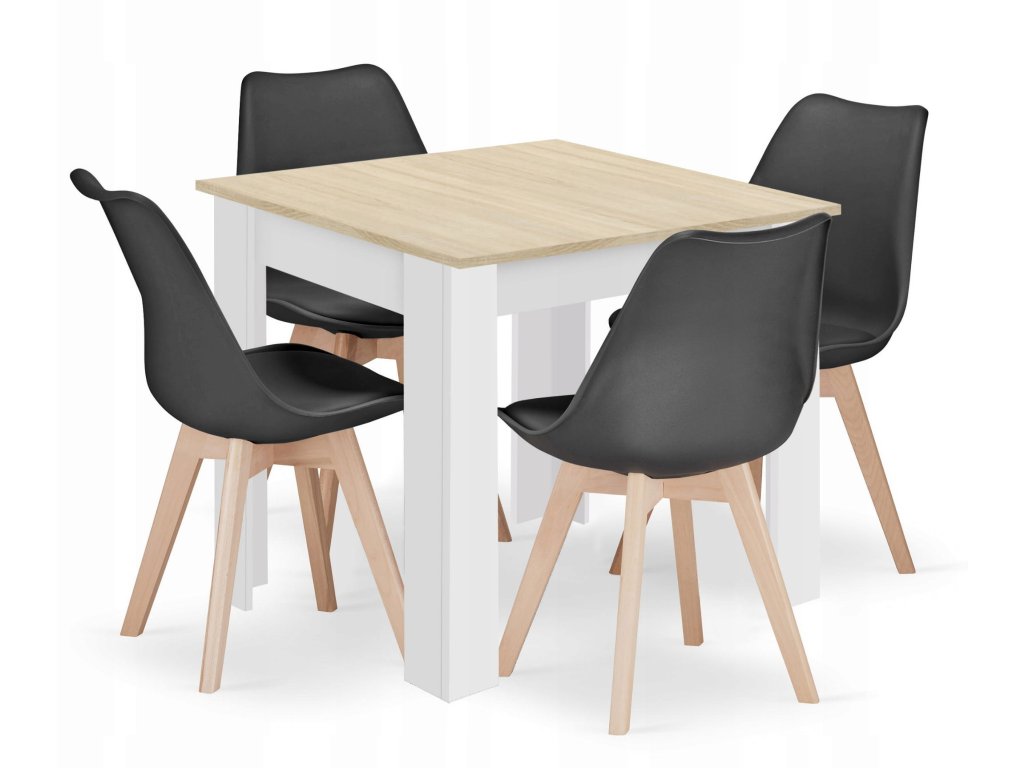 Jídelní set 1 + 4, stůl MADO 80x80 bílý/dub sonoma + židle BALI MARK černá