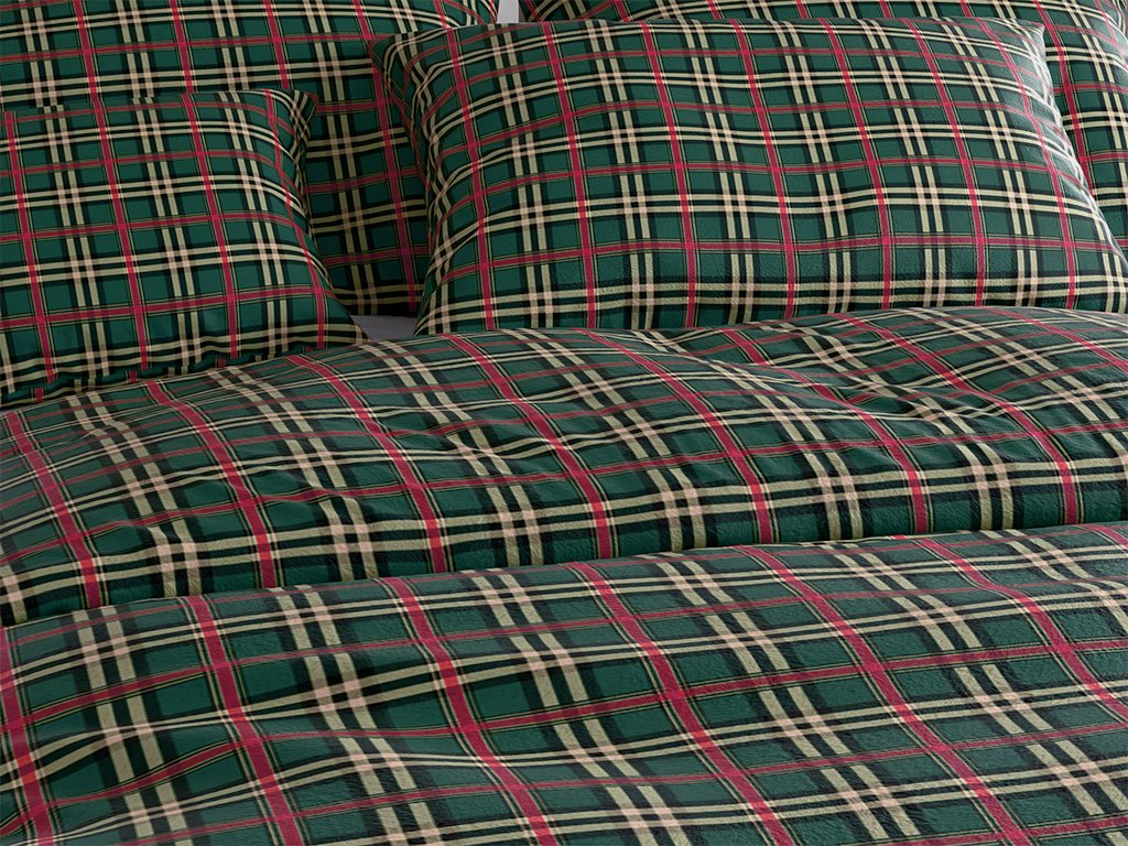 Sada mikroplyšového povlečení GLENMOORE zelené + prostěradlo mikroplyš SOFT 180x200 cm bílé, dvoulůžko