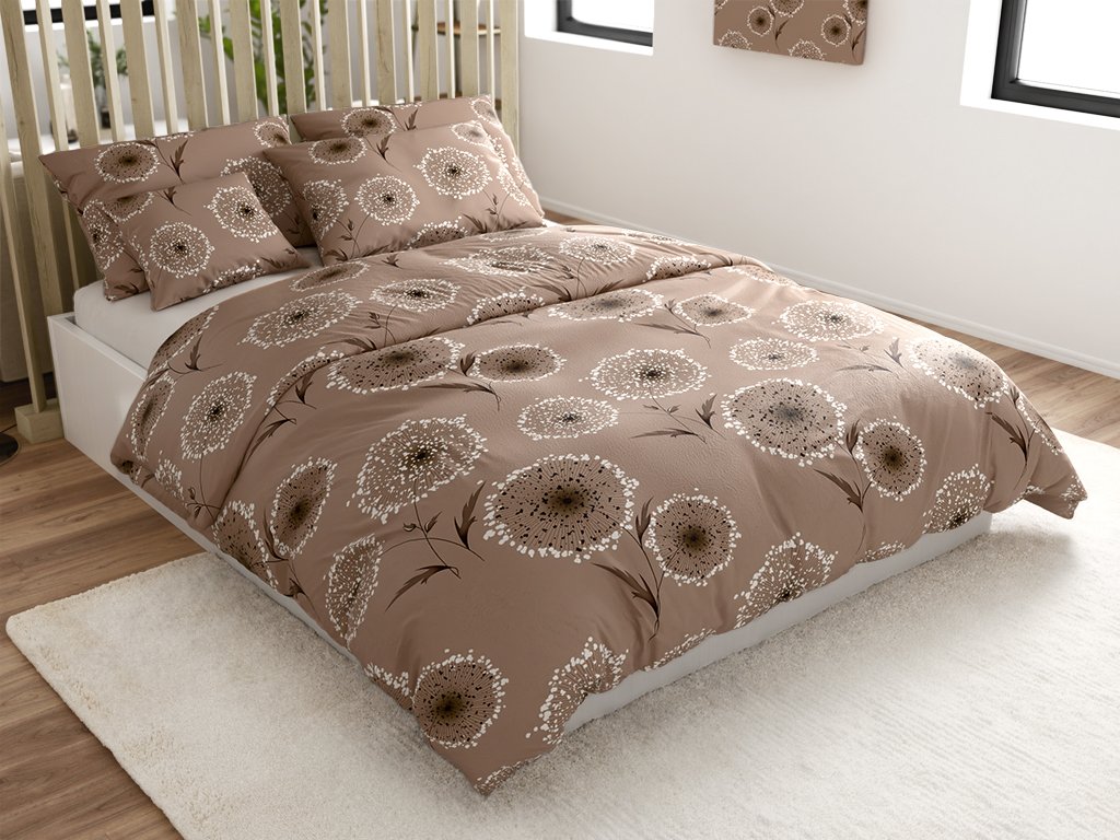 Sada mikroplyšového povlečení PAMPELINO světle hnědé + prostěradlo mikroplyš SOFT 180x200 cm bílé, dvoulůžko