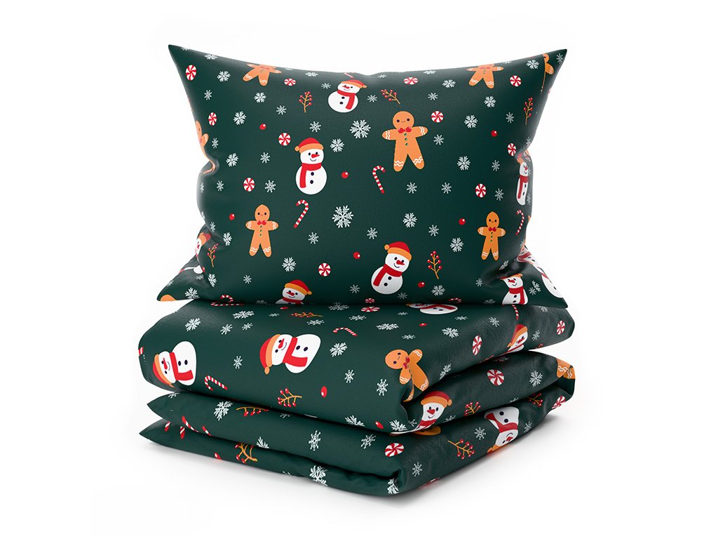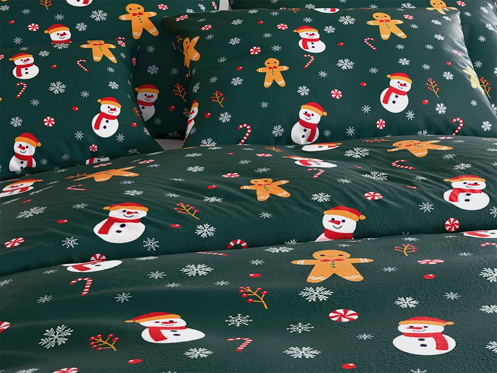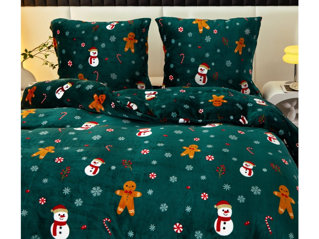 Sada mikroplyšového povlečení SNĚHULÁK A PERNÍČEK zelené + prostěradlo mikroplyš SOFT 90x200 cm bílé, jednolůžko