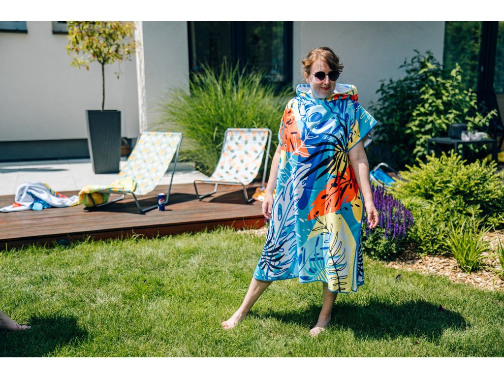 Vstupte do letního dobrodružství s pončem, které spojuje styl, praktičnost a pohodlí. Ať už se chystáte na pláž, k bazénu nebo na dovolenou u moře, tento kousek se stane vaším nenahraditelným parťákem. Díky jemnému mikrovláknu a chytrému střihu s kapucí vás ochrání před sluncem i větrem a zároveň se postará o rychlé osušení. Letní chvíle si zaslouží být bezstarostné – a právě takové vám toto pončo pomůže vytvořit.