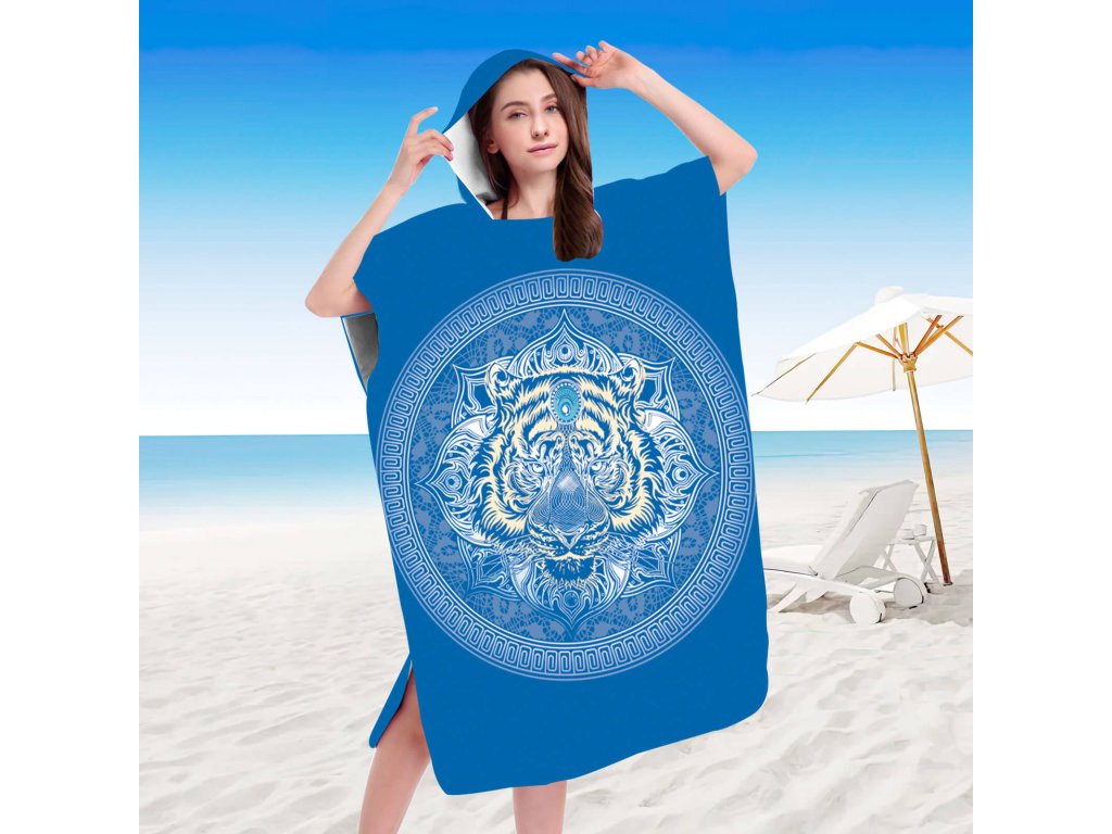 Plážový set TIGER – osuška 100×180 cm a pončo 80×145 cm, modrá