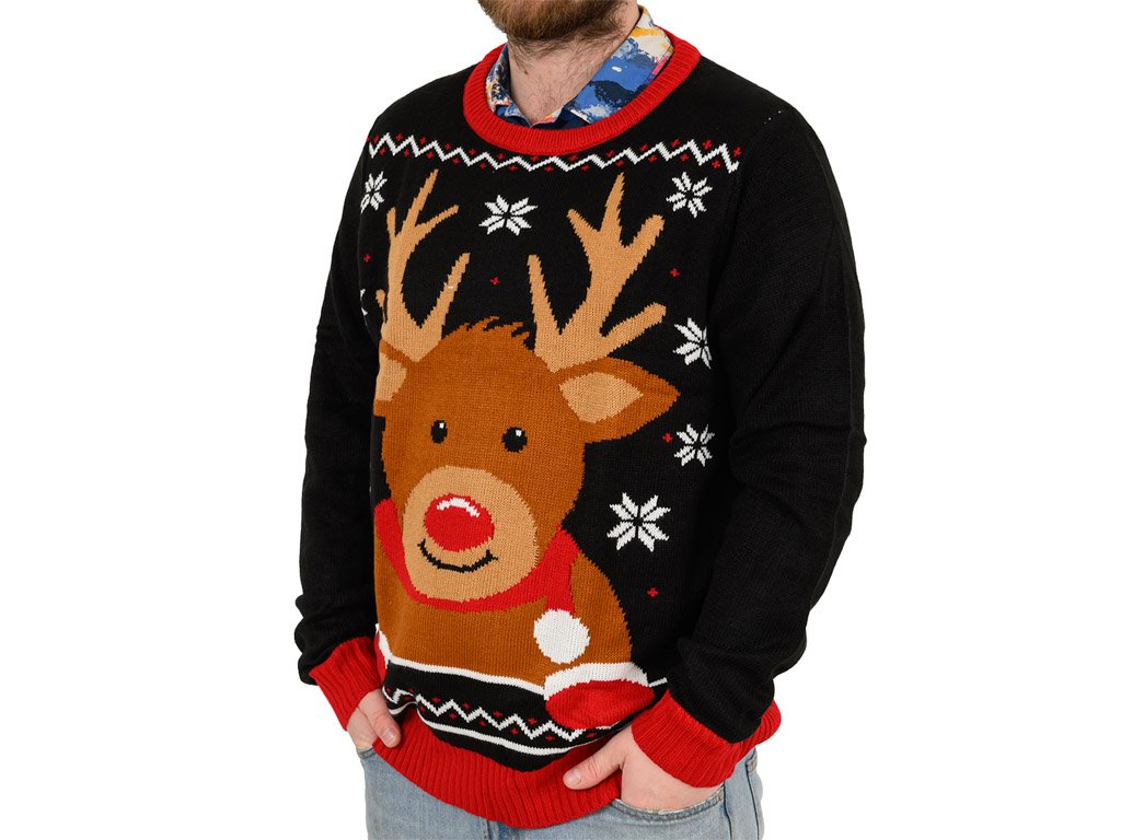 AKCE Vánoční svetr pánský CHRISTMAS REINDEER černý - různé velikosti II.jakost