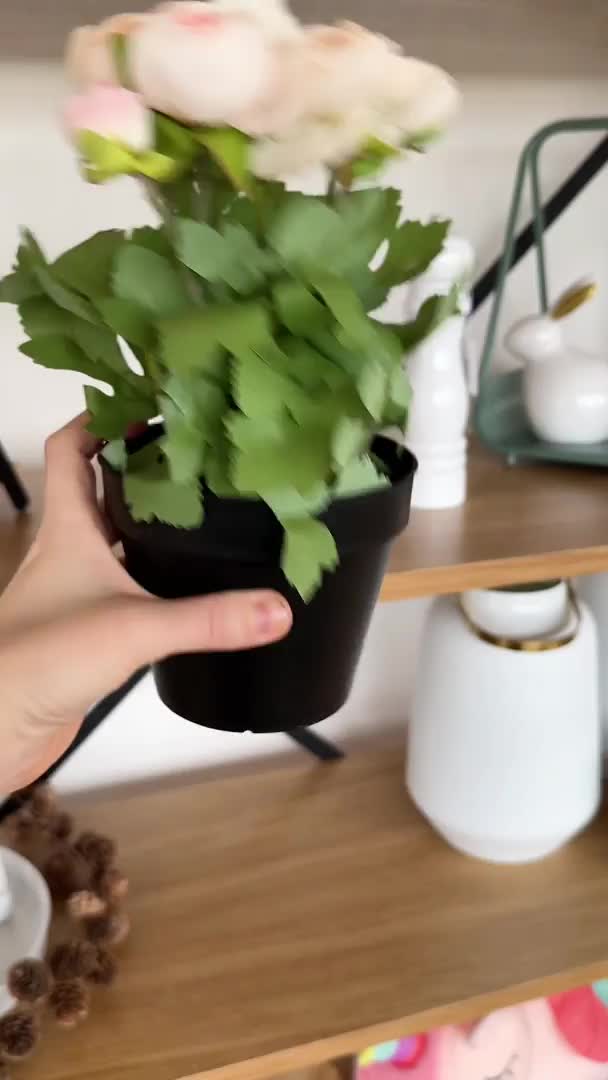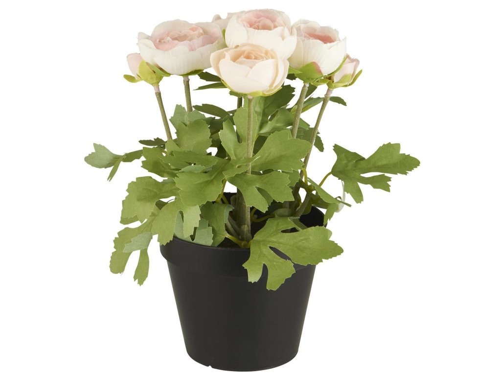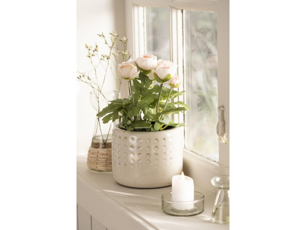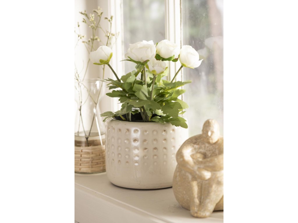 Bílý umělý pryskyřník v květináči RANUNCULUS