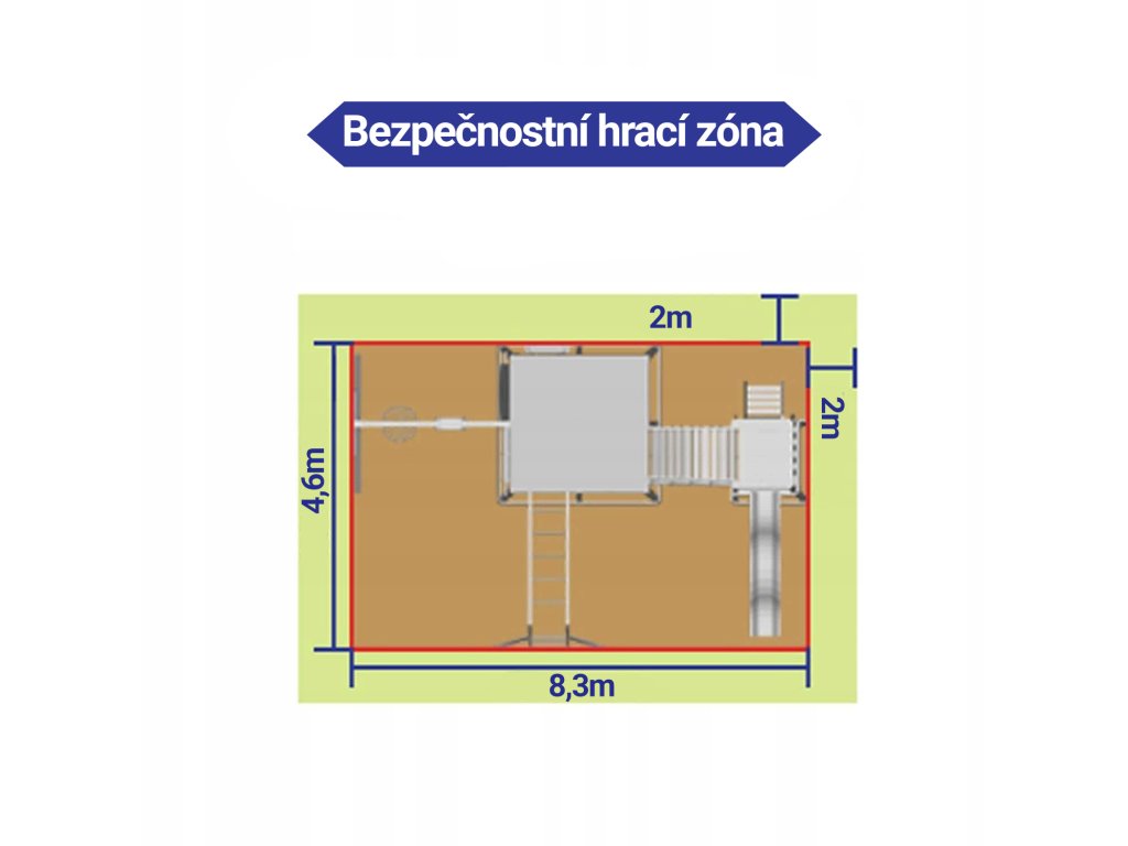 - Hřiště by mělo být umístěno na rovném terénu alespoň 2 metry od jakýchkoli struktur nebo překážek.