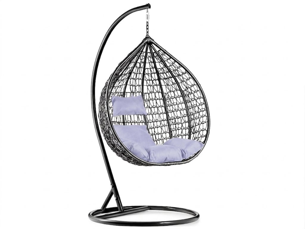 Černé závěsné křeslo KOKON se stojanem, světlý polštář