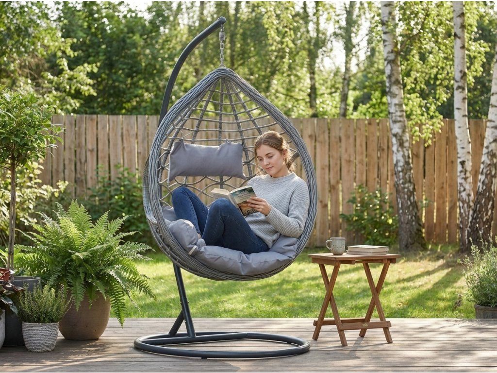 Objevte blahodárné účinky houpání. Ano, závěsná křesla tzv. vajíčka budou hýčkat i vaše duševní zdraví. Houpání vyvolává pocit pohody, vnitřního klidu a odstraňuje psychické napětí. Kvalitně zpracovaná houpací křesla vyrobená z umělého ratanu jsou vysoce odolná vůči nepříznivému počasí i domácím mazlíčkům. Umělý ratan na první pohled od toho přírodního téměř nerozeznáte. Užívejte si volné chvíle na závěsných křeslech ve skandinávském stylu, která patří mezi nejoblíbenější kousky zahradního nábytku.