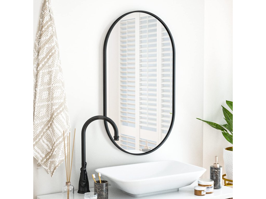 Oválné zrcadlo na zeď OLVANI 80x40 cm s černým rámem